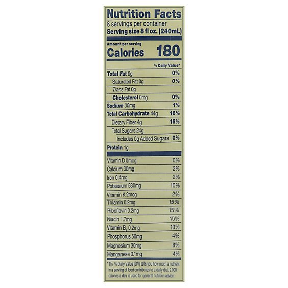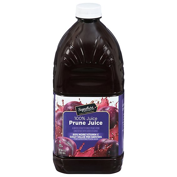 Signature SELECT Juice Prune is a water extract of dried prunes from concentrate with added Vitamin C that contains 60% more vitamin C than unfortified prune juice. It is pasteurized and has a quality satisfaction guarantee, and is certified Kosher.