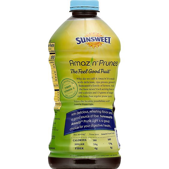 Sunsweet Amazin Juice Cocktail Prune Light is a 64 Fl. Oz. drink made of prune juice, water, and other natural ingredients like Vitamin C and iron. It is certified Kosher and gluten free.