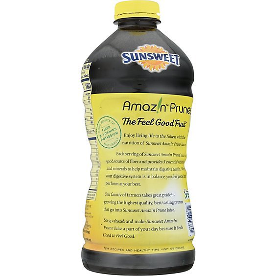 Sunsweet Juice Prune is a great source of fiber, B vitamins, potassium and 5 essential vitamins and minerals. It is also gluten-free, Kosher and pasteurized for extra safety. Drinking Sunsweet Prune Juice helps maintain digestive health, so you can feel good and perform at your best. Plus it has the delicious taste of the Feel Good Fruit!